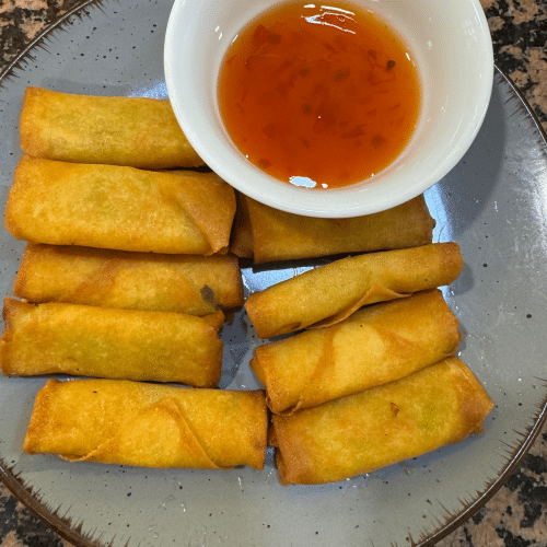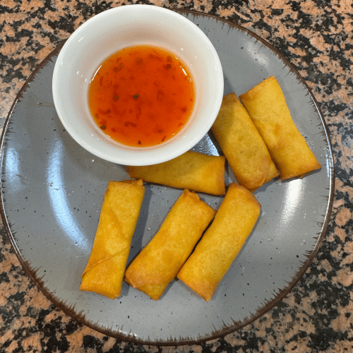 Mit 5 vegetarischen Mini-Frühlingsrollen