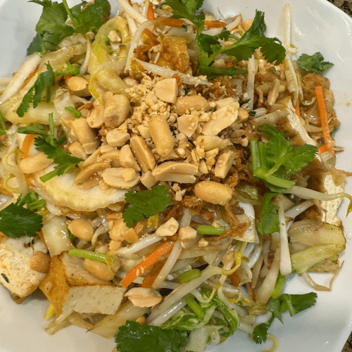 Leicht, frisch, aromatisch - unsere hausgemachten Salate zum Genießen, frisch zubereitet mit Eisberg-und Krautsalat, Gurke, Koriander, Möhren, Sojasprossen, Röstzwiebeln, Erdnüssen in hausgemachtem Dressing